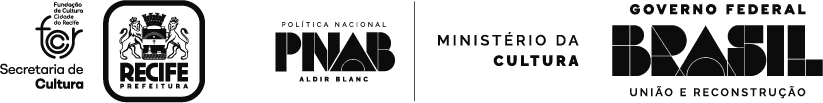 Contemplado no Edital de Formação Técnica - PNAB RECIFE, conta com incentivo da Secretaria de Cultura da Prefeitura do Recife, por meio da PNAB, direcionada pelo Ministério da Cultura - Governo Federal, com apoio da Galeria Maumau e realização da Experimento Produções.